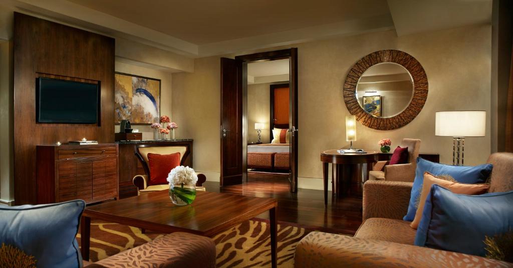 Air-conditioned rooms feature a spacious seating area and are equipped with a work desk, flat-screen satellite TV, minibar and electric kettle. The en suite bathrooms feature complimentary Asprey of London bath amenities.